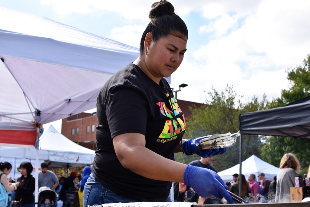 The menu for Pupuseria Maria #2’s stand at College Park Day on Oct. 5, 2019. Pupuseria Maria #2 of Hyattsville, MD, served as a food vendor at College Park Day to showcase their restaurant to the community while offering affordable options for attendees. (Photo by Jordan Swarm)Juan Velasquez and Caroline Soto write down pupusa orders at College Park Day in College Park, MD on Oct. 5, 2019. Pupuseria Maria #2 of Hyattsville, MD, served as a food vendor at College Park Day to showcase their restaurant to the community. (Photo by Jordan Swarm)Cynthia Rodriguez puts fresh pupusas on the grill at College Park Day in College Park, MD on Oct. 5, 2019. Pupuseria Maria #2 of Hyattsville, MD, served as a food vendor at College Park Day to showcase the restaurant to the community. (Photo by Jordan Swarm)Cynthia Rodriquez flips a cheese pupusa on the grill at College Park Day in College Park, MD on Oct. 5, 2019. Pupuseria Maria #2 of Hyattsville MD, served as a food vendor at College Park Day to showcase the restaurant to the community. (Photo by Jordan Swarm)Caroline Soto adds salsa roja to the plates of pupusas at College Park Day in College Park, MD on Oct. 5, 2019. Pupuseria Maria #2 of Hyattsville, MD served as a food vendor at College Park Day to showcase the restaurant to the community. (Photo by Jordan Swarm)Cynthia Rodriquez plates the finished pupusas as Caroline Soto helps customers in the back at College Park Day in College Park, MD on Oct. 5, 2019. Pupuseria Maria #2 of Hyattsville, MD served as a food vendor at College Park Day to showcase the restaurant to the community. (Photo by Jordan Swarm)A line wrapped around the front of Pupuseria Maria #2 as hungry College Park Day attendees waited to place their order on Oct. 5, 2019. Pupuseria Maria #2 of Hyattsville, MD, served as a food vendor at College Park Day to showcase their restaurant to the community. (Photo by Jordan Swarm)